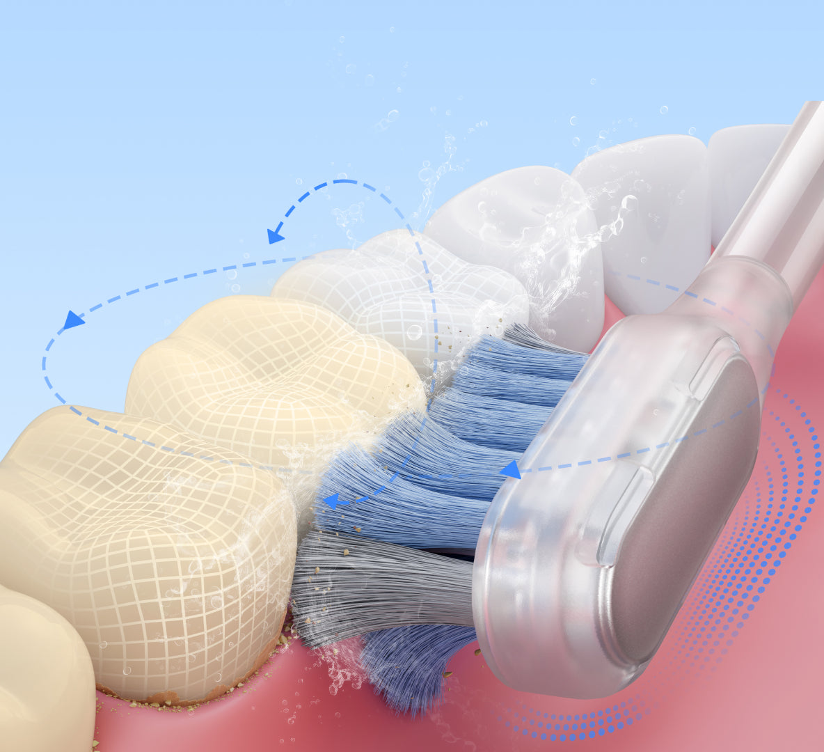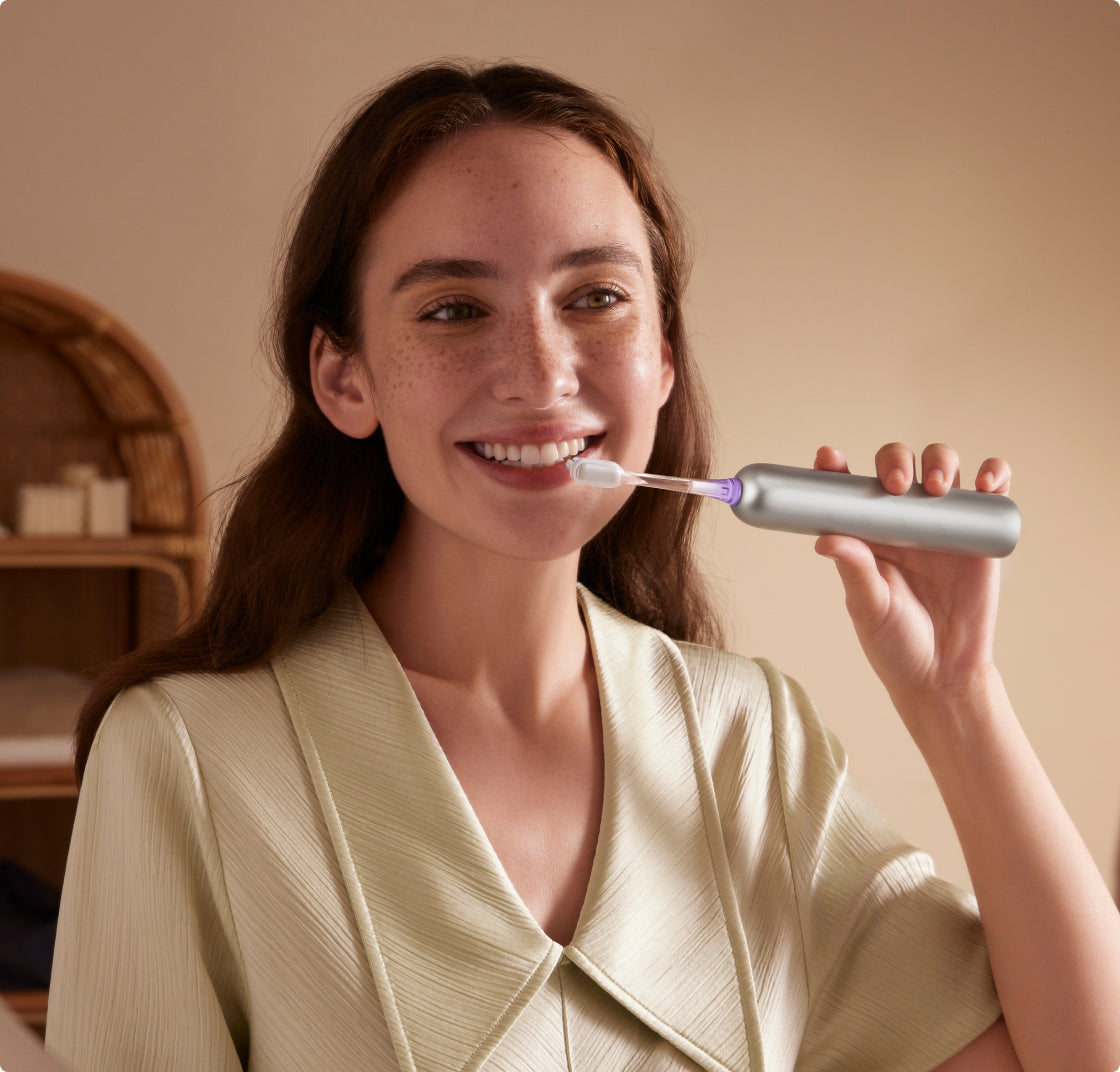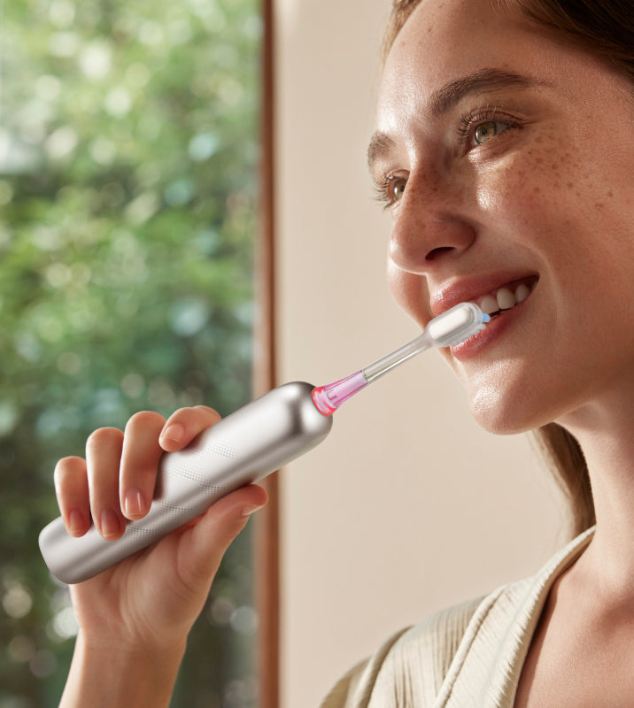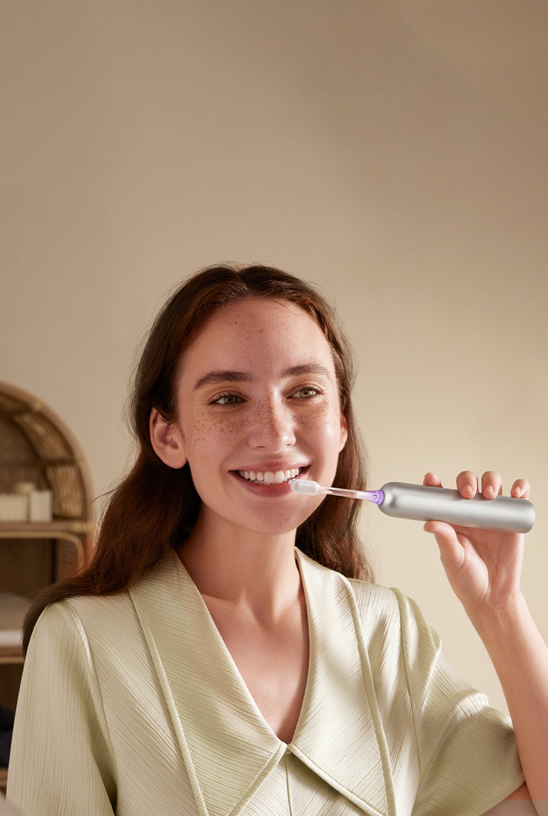 FDA 承認*済みの敏感なブラシヘッドが、歯茎を傷つけることなく、歯茎のラインに沿って優しく磨きます。非常に柔らかい 0.01mm* の毛先が、敏感な歯ぐきを安全かつ効率的にケアし、歯と歯ぐきの間の狭い隙間から歯垢をスムーズに除去します。