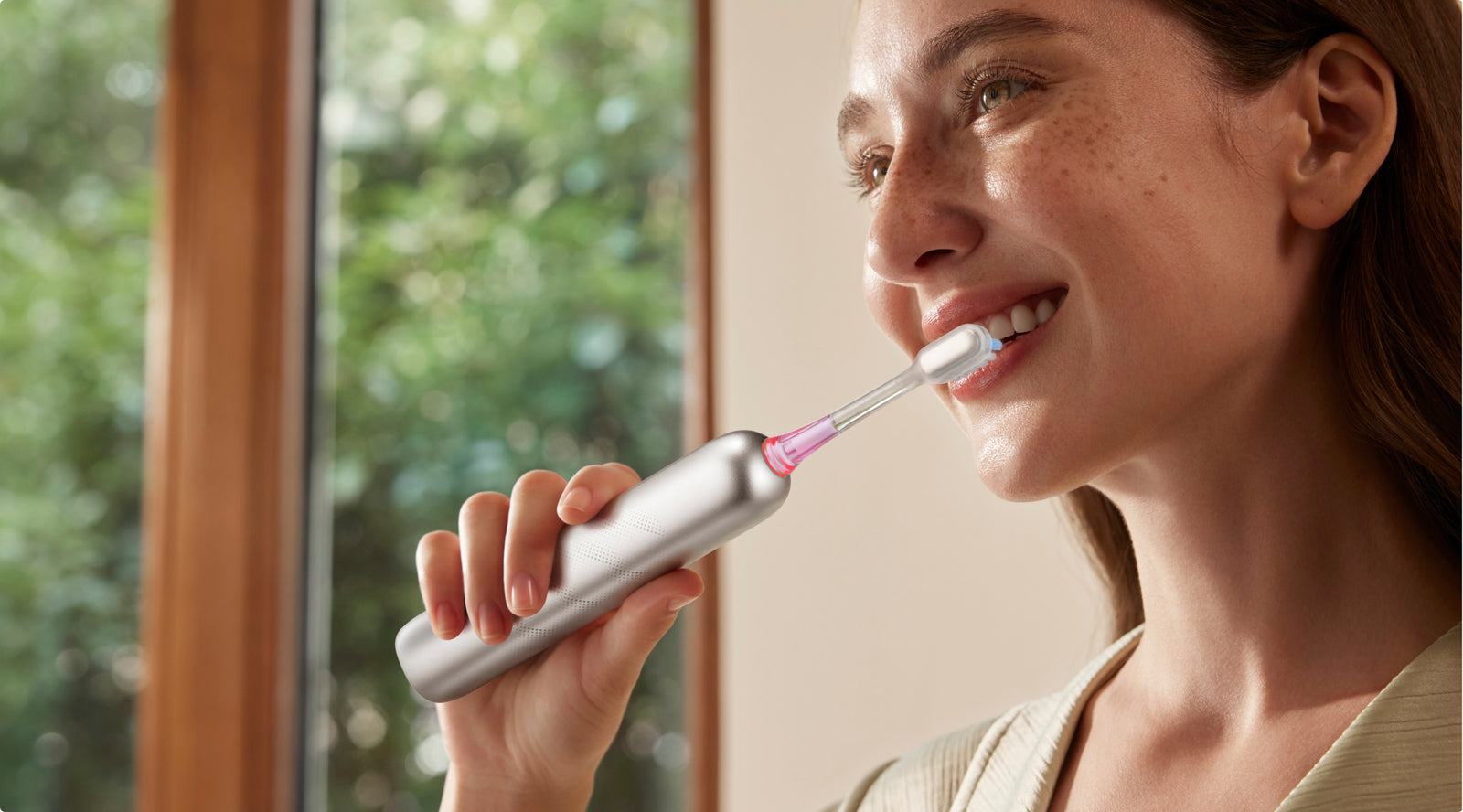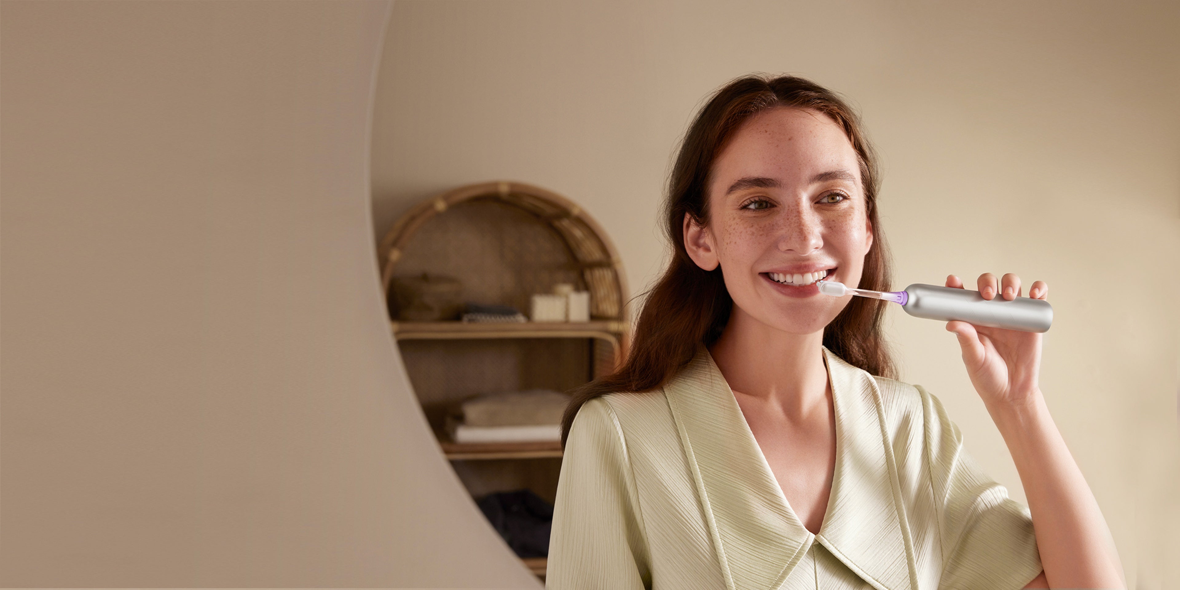 誤って歯ブラシを落としてしまう心配が少なくなります。フレッシュ・プロ は、優れた撥水性を実現する高度なナノコーティングを採用し、防飛沫仕様となっています。弧状のデザインにより、水や汚れの蓄積を防ぎ、濡れた環境でも最適なパフォーマンスを維持します。