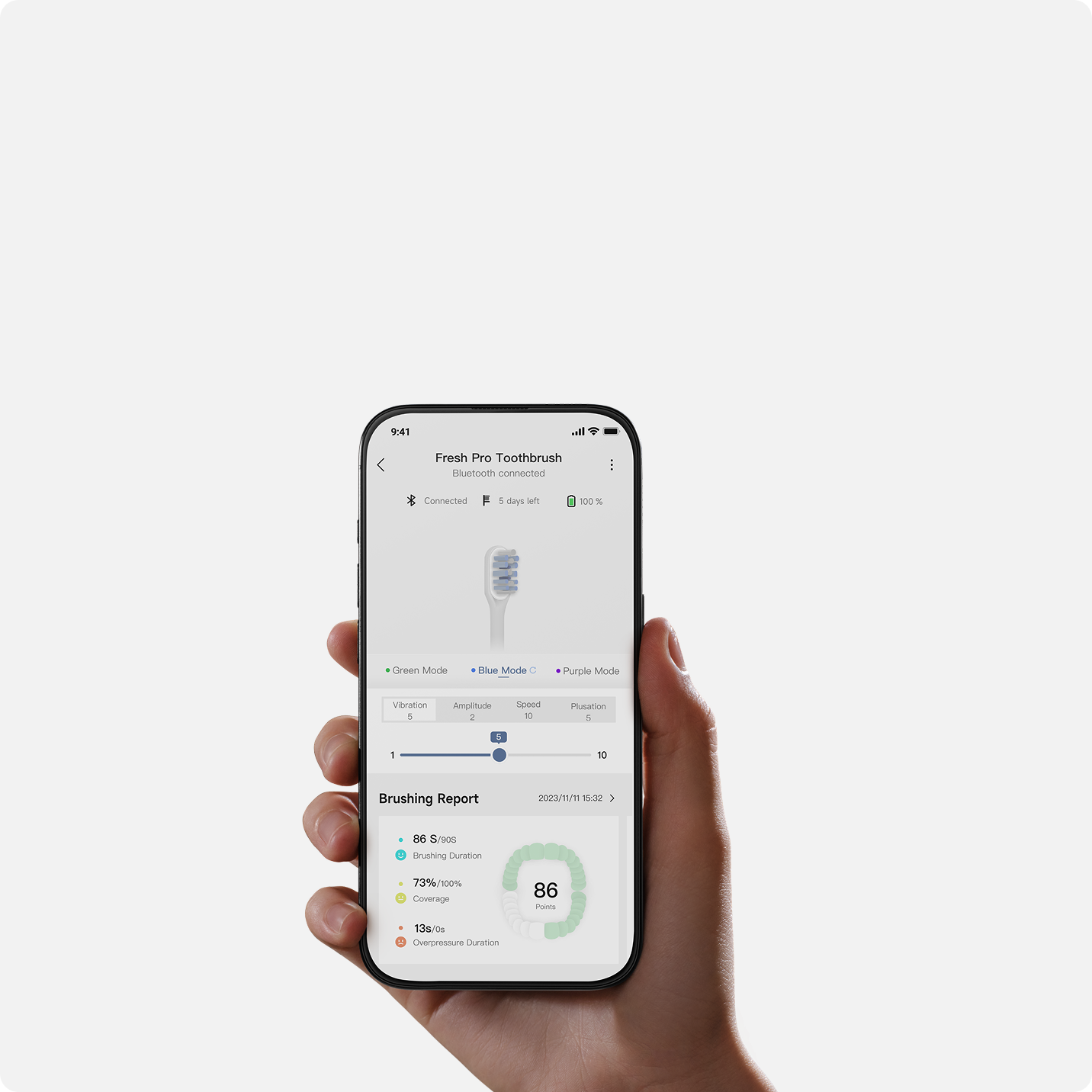 フレッシュ・プロは、サーボモーターとステッピングモーターを搭載した革新的な 3DClean™ テクノロジーを採用しています。音波振動と上下左右の正確な洗浄を組み合わせ、簡単に歯全体を徹底的に洗浄します。手動歯ブラシの8倍*、音波歯ブラシの2倍*の徹底洗浄で、明るい笑顔と健康な歯を手に入れることができます。