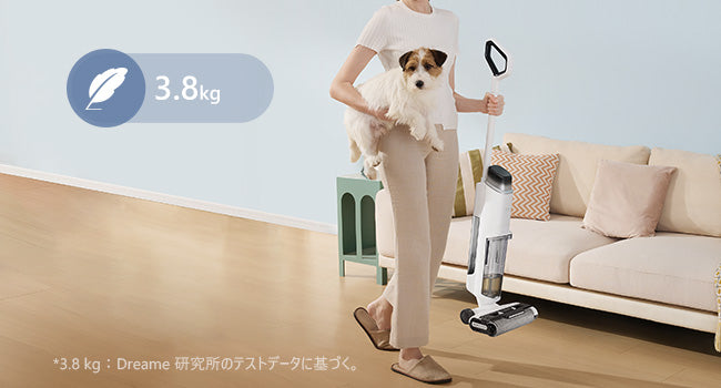 K10 Proは、強力なパワーを持ちながらも重さは3.8 kg* と軽量。一階から二階への持ち運びも簡単に行えます。動作時の重量はわずか0.9kgです。