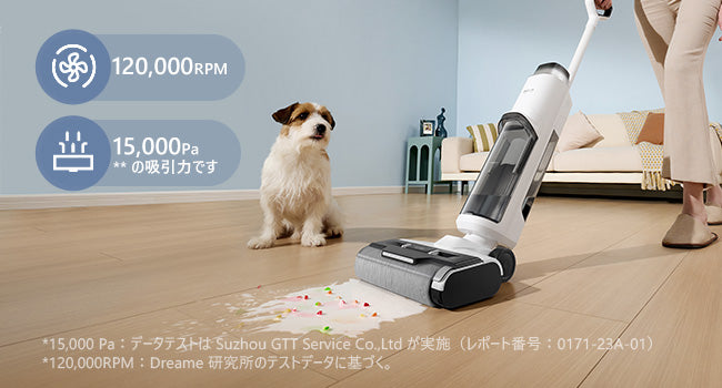 散らかった家を汚れとは無縁の家に変えるのは、K10 Pro 独自の毎分12万回転*のブラシレスモーターが発揮する15,000 Pa**の吸引力です。この強力な組み合わせにより、液状の汚れも固形の汚れも強力除去。こぼしたコーラもペットの毛も残しません。