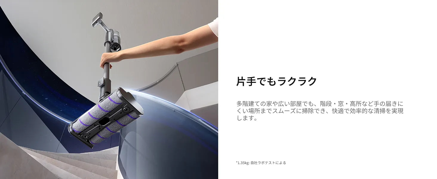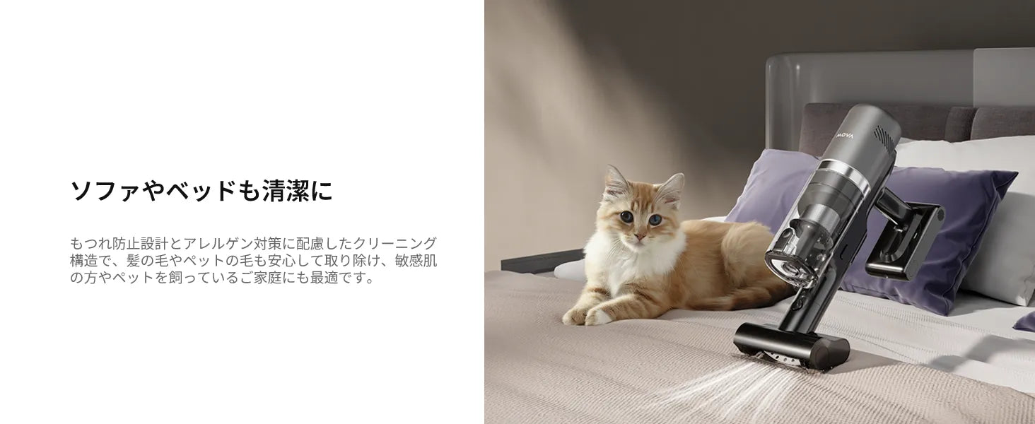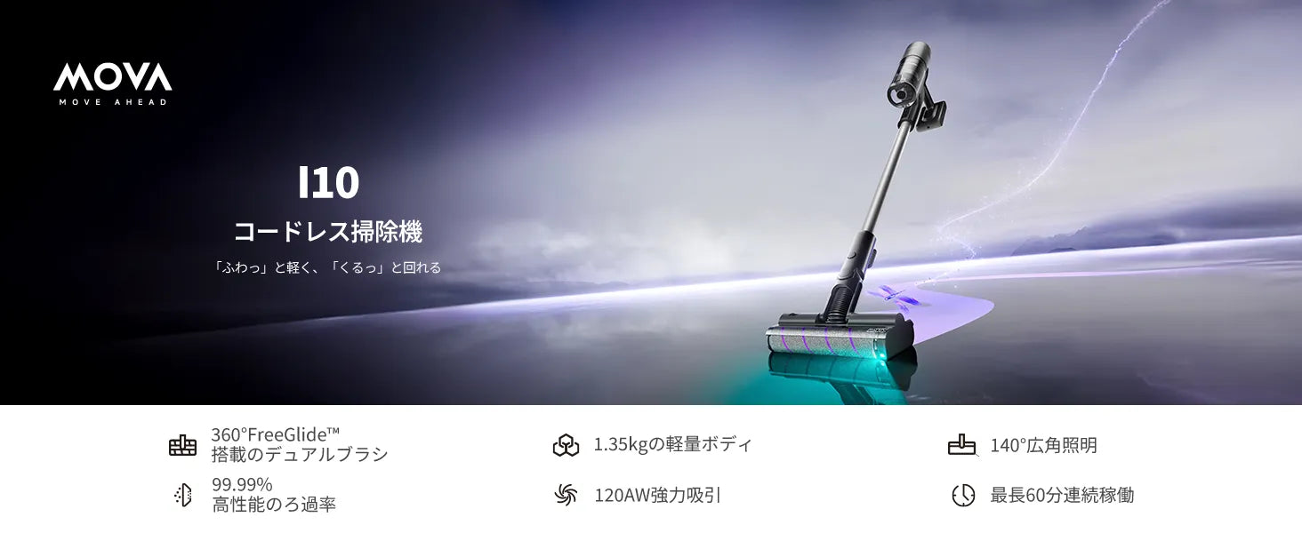 MOVA I10は、たった1.35kgの軽量ボディに20,000Paの強力吸引力を備えたコードレススティック掃除機です。