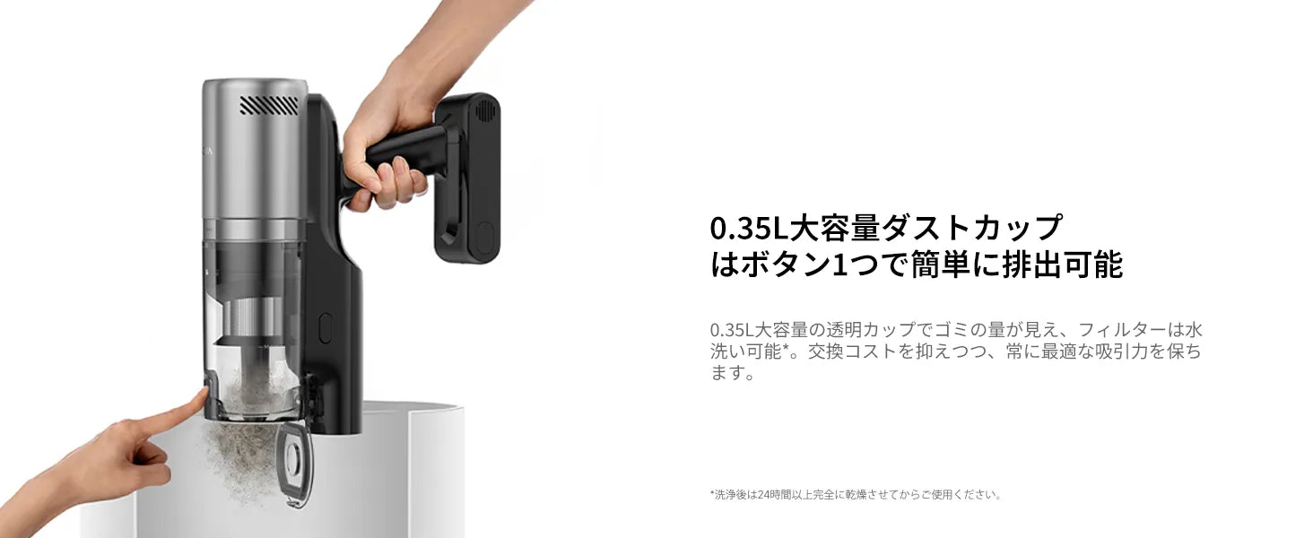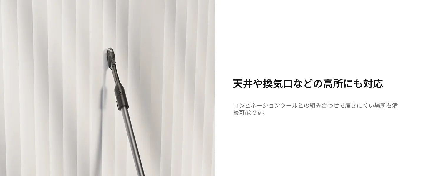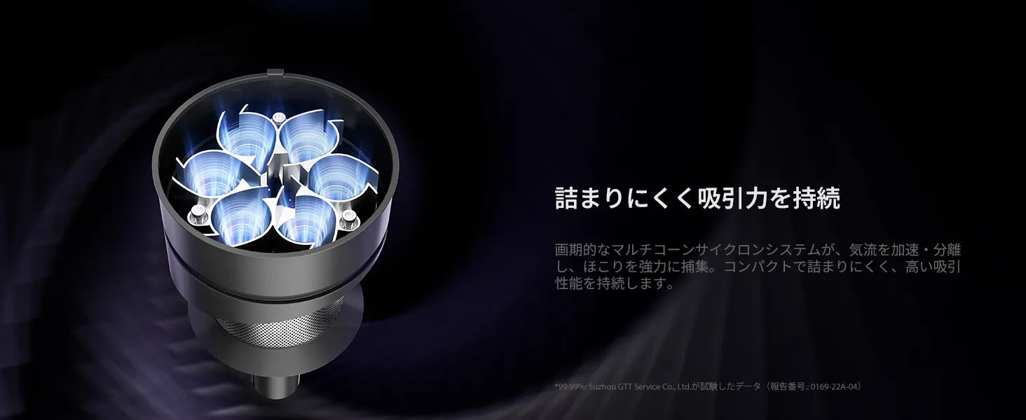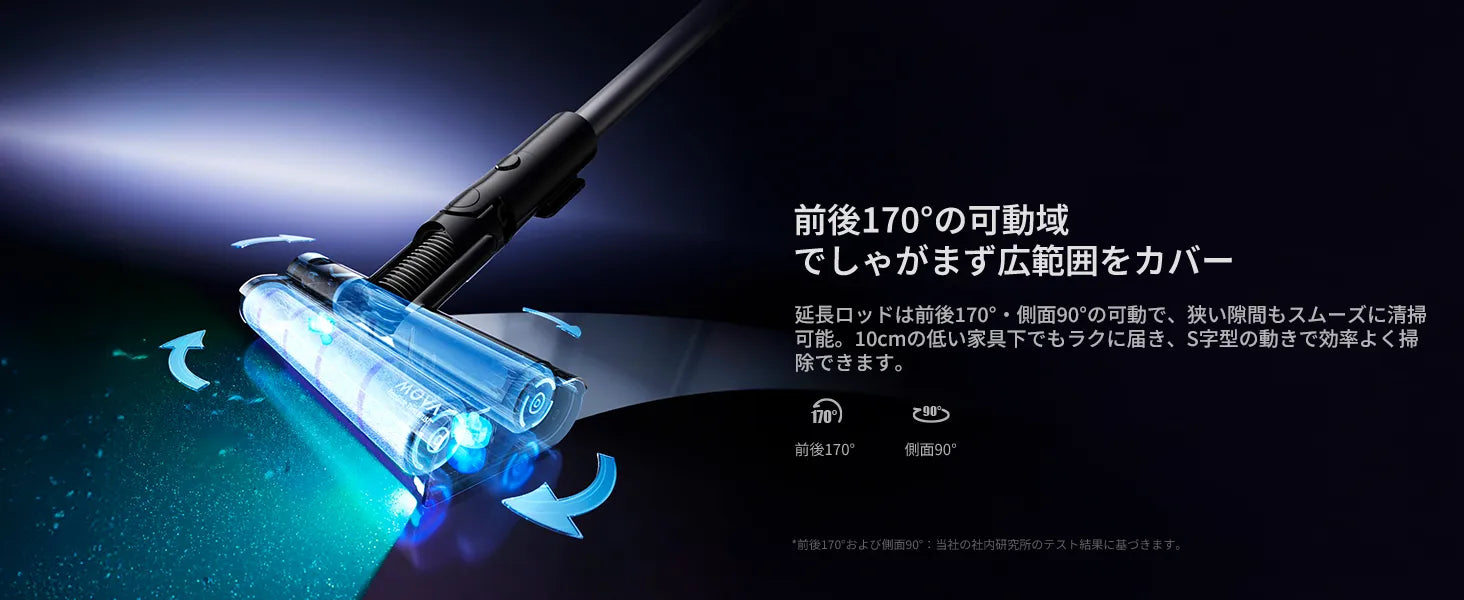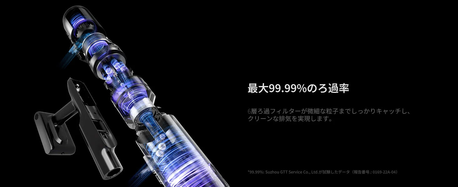 170°フラットリーチ構造で家具下もラクに掃除でき、6層フィルターで99.99%の微細粉塵を除去。