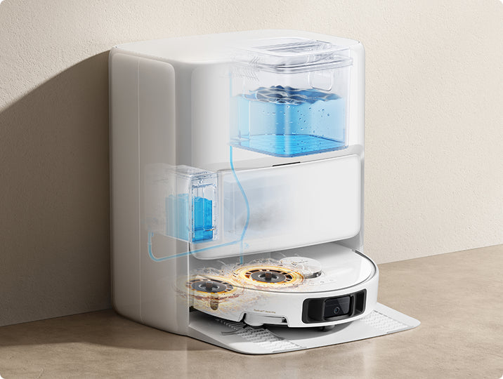 P50 Ultraの連続清掃動作をご体験ください。カーペットの掃除であろうと頑固な汚れの拭き取りであろうと、5,200mAhのバッテリーで広い家の清掃にもしっかり対応します。ロボット掃除機はドックに戻って充電し、その後清掃を再開します。オフピーク充電により、電気代の節約にも繋がります。