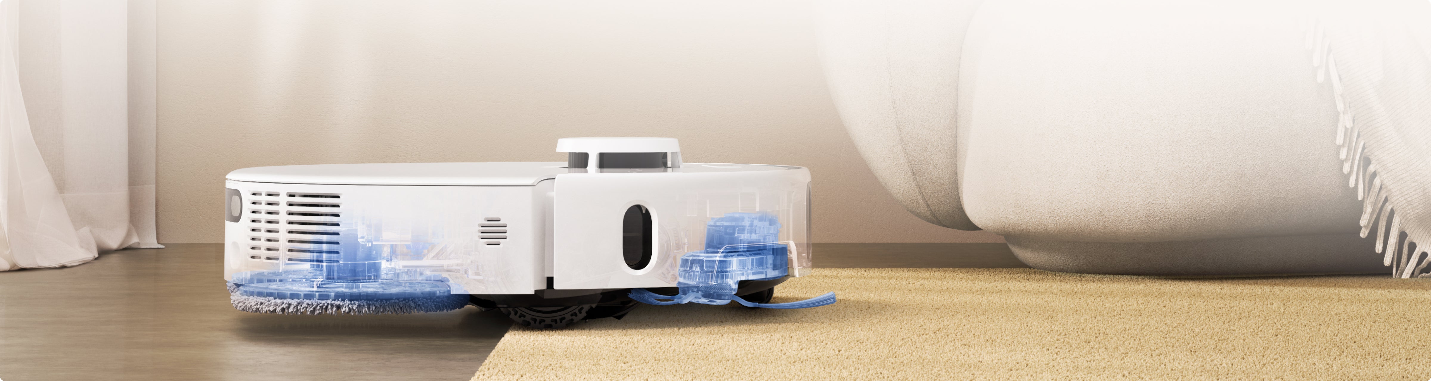 P50Ultraの揺るぎない19,000Pa*の吸引力により、壁際や巾木周辺、背の低い家具の下にあるホコリやペットの毛などの大小のゴミを徹底的に捕集します。