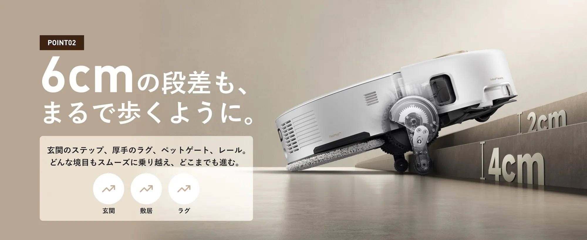 • 最大6cmの段差乗り越え能力